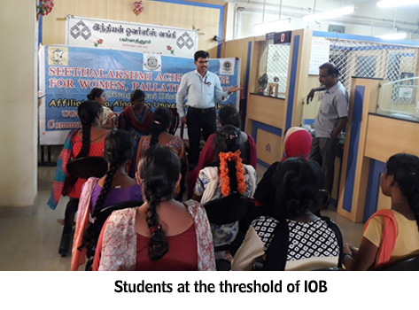 In order to create awareness about Banking activities and schemes like mobile banking, internet banking, educational loans etc., the Cop students were taken to Indian Overseas Bank Pallathur. There a special lecture was arranged by the Bank manager, Kanadukathan. This lecture was very informative to the students as it comprised almost all the functions related to Banks.