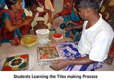 This tour covers a wide range of subjects and concepts right from women entrepreneurship, for which the COP students were taken to a nearby village O’Siruvayal, where a small-scale industry was running for the production of palm plates. The COP students then toured on to the next nearby village Attangudi, which is very famous for country floor tiles. The students then moved on to a nearby BPO centre at O’Siruvayal –Global Innovative Solutions Pvt Ltd. When students scramble for jobs, BPO centres like these throw ample job opportunities.