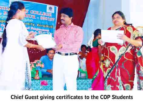 A special lecture was arranged for the COP students. Dr. A. Antonysamy, a visiting lecturer, Alagappa University, Karaikudi, has kindly consented to be the chief guest. He delivered a lecture on Communicative English and its Effectiveness to the COP students and distributed the prizes and the certificates to the students.