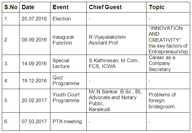 | 1. | 2016-2017 S.Elavarasi K.Josephin T.Karthiga S.Karthika M.Pavithra U.Arthi S.Vaishnavi S.Karthika M.KohilaShree V.Sornalakshmi S.Karthika |