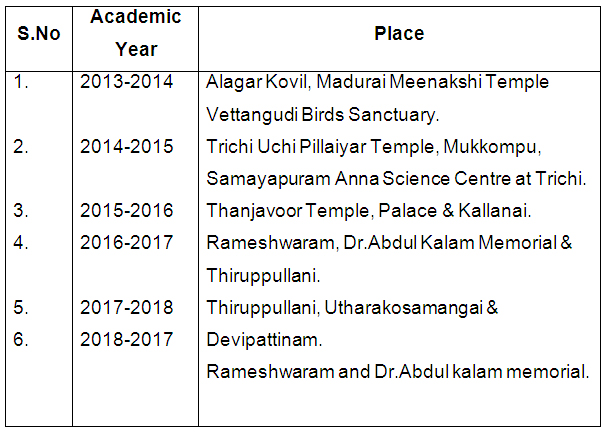 Our department organizes tour every year. So far we have visited various places. The details are given below.