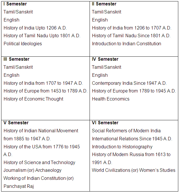 In 1963, with the opening of the B.A class with Branch IV under part III economics as major, teaching history as ancillary was started. Miss. T. Malarmagal served as the Lecturer in the academic year 1964 – 1965.