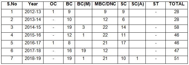 The effectiveness of teaching-learning process in this department is clearly proved by the rank holders of B.A examination of the Alagappa University as presented below: