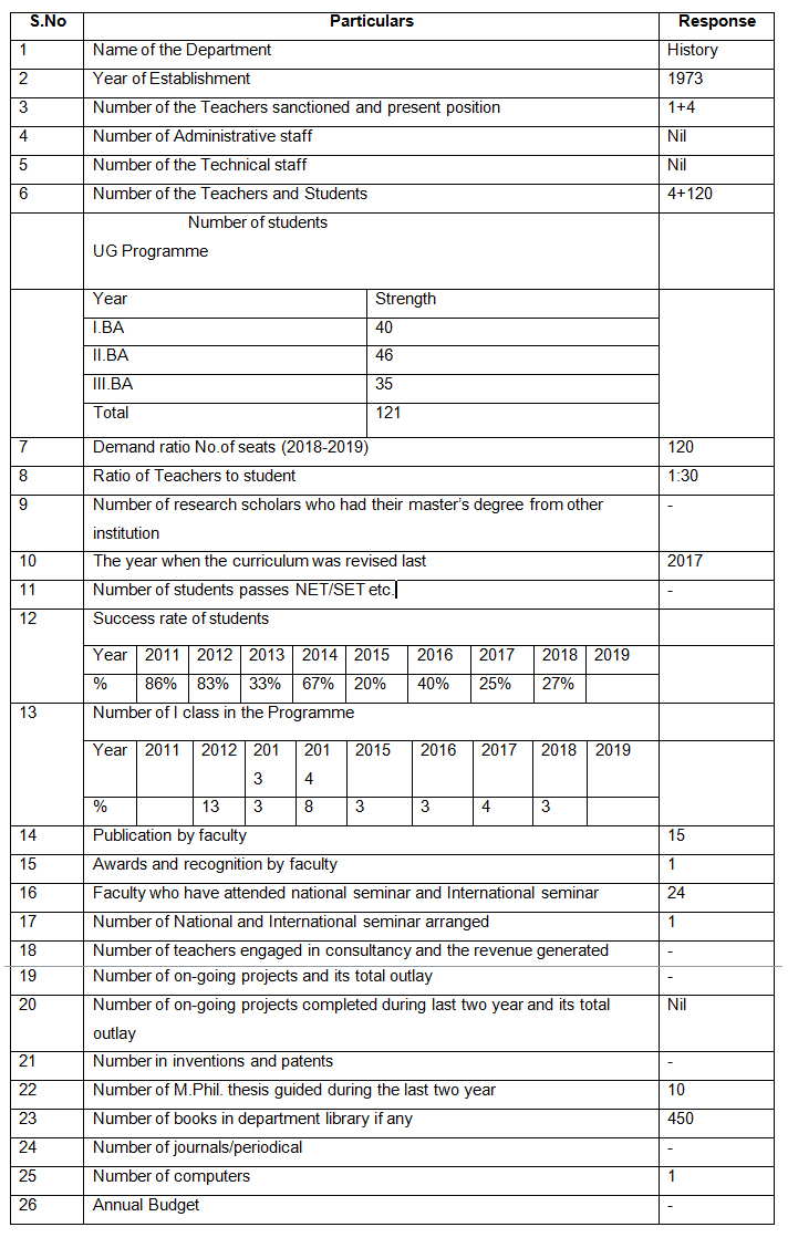 | 1. Name and address of the Department | Department of History, Seethalakshmi Achi College for women, Pallathur-630107 |