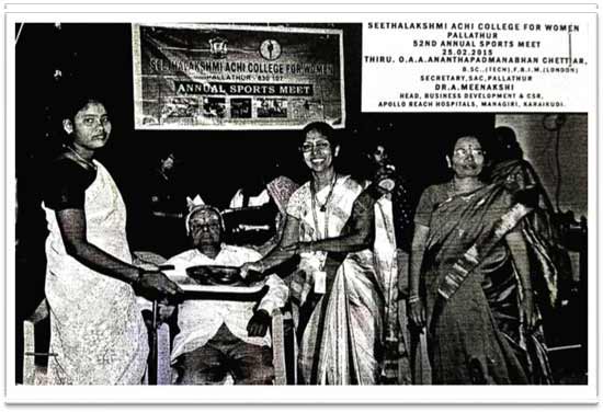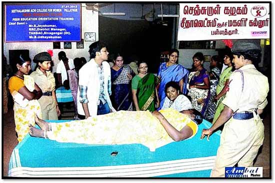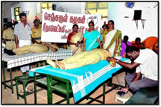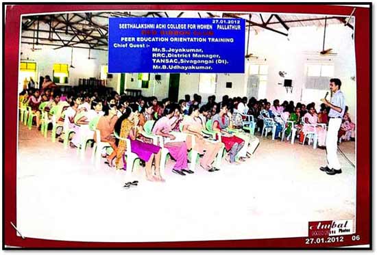 A team of doctors from Rajaj Hospital, Madurai came to Seethalakshmi Achi College for Women, Pallathur on 25.1.12 to collect the blood from our students. 32 students of our college donated the blood.