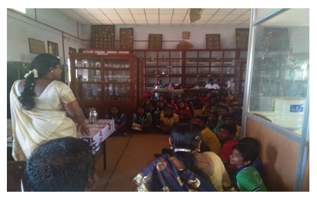 Under the scheme of extension work S.Meenal ,R.Elakkiya and M.Sivagami of III B.Sc., Zoology taught basic English and demonstrated the experiments to the school children. The school children and teachers appreciated volunteer service rendered by the students.