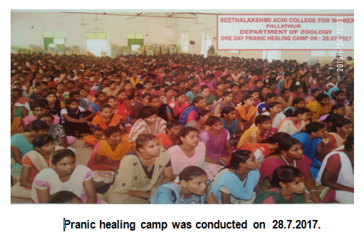 On behalf of zoology association a special meeting was organized on 13.2.17. BK.ArunadeviBrahmakumari, Rajayoga meditation centreKaraikudi gave a special lecture on ‘God’s Wisdom for World’s Transformation’ Her speech motivated the students to have a strong will power, positive thinking etc,. She emphasized that all are souls and childrens of God. She also gave a practical training and meditation, students were enlightened by her speech.