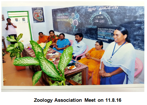 The following members were unanimously elected as the office bearers of Zoology association. Secretary S.PRIYA III B.SC.Zoology , Joint secretary J.VAIJEYANTHI II B.sc.Zoology, Committee members R.MANIMEGALAI I Zoology G. SIVASANGARI I Zoology.