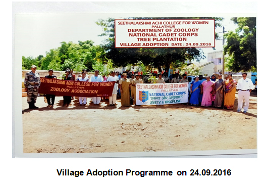Our department adopted a village, Kotthari near by our college on 24.9.16, in the presence of our principal Dr.S.Ramuthai, Retired principal and Chief Executive Officer Mrs. PappaManickam, Vice Principal Dr.Thirumamagal, N.C.C Officer and Zoology department HOD Dr.R.Ananthaselvi, other faculty members, Village Trustee, President and other office members of the village were witnessed the programme.