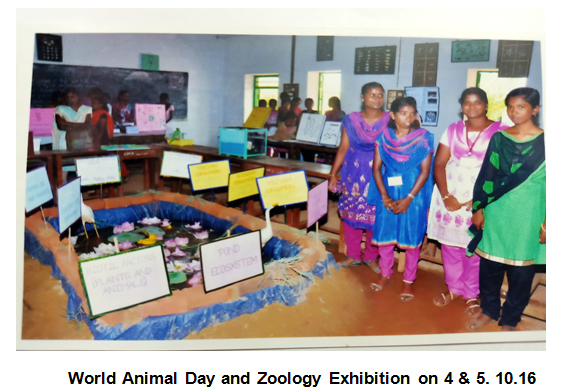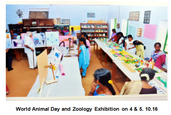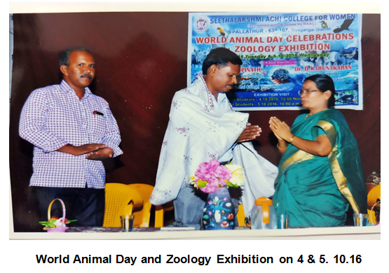 Department of zoology organized and celebrated two day programme on ‘World Animal Day’ celebration and Zoology Exhibition on 4.10.16.and 5.10.16.