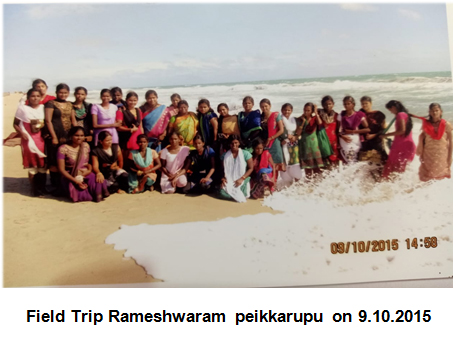 One day field visit was arranged on 27.9.16. our students were taken to Manora, Mangroove forest, Muthupet, zoological park at Vedharaniyam, Velankanni, the students were much benefitted and enjoyed the trip.