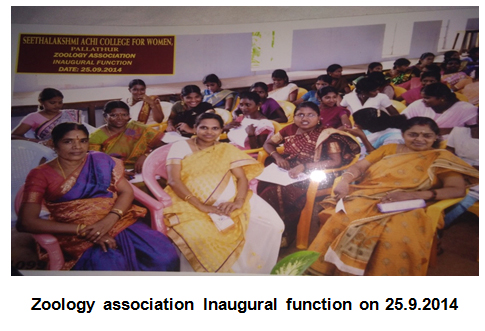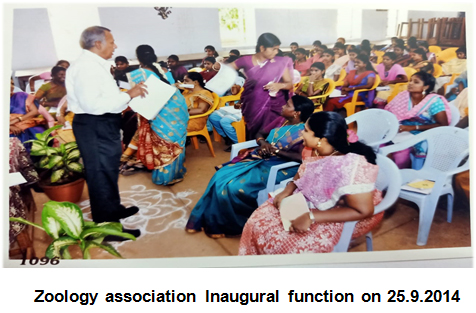 The inaugural function of the Zoology association held on 25.9.2014. Dr.Swaminathan, Professor and Head, Dryland Agricultural Research Station Chettinad gave a lecture on ‘Know Thyself’.