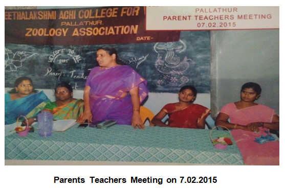 PTA meet was conducted by our department on 17.08.2018. The main purpose of this meeting is to build a strong working , relationship among parents, teachers & institution., Academic performance of the students and social , emotional & behavioral topics were discussed in the meeting.