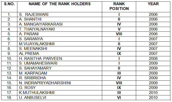 ALAGAPPA UNIVERSITY RANK HOLDERS – U.G. 2006-2009